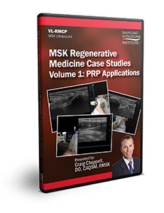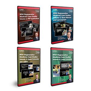 MSK Regenerative Medicine Case Studies Volume 1: PRP Applications - Training Video is designed to provide live demonstrations of a variety of MSK interventional procedures and regenerative medicine techniques. Procedural demonstrations of ultrasound-guided PRP procedures for treating the ankle, shoulder (2 cases), and knee (2 cases) are included.