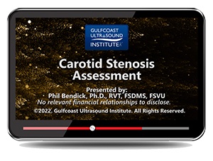 Carotid Stenosis Assessment Training Video is designed to provide an overview of carotid duplex/color flow imaging techniques and criteria to diagnose cerebrovascular disease. The lecture includes how to analyze the spectral Doppler waveform characteristics, integration of routine measurements, and carotid case presentations. The participant will be able to apply current diagnostic criteria to evaluate carotid stenosis and other associated abnormalities after viewing this video.