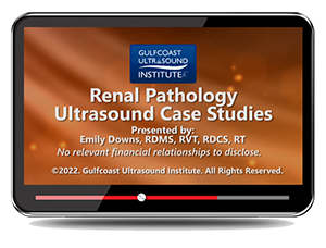 The Renal Pathology Ultrasound Case Studies training video includes ten interactive cases of a variety of renal pathology. Patient history/physical exam, ultrasound images are provided with a multiple choice option for selecting the appropriate diagnosis. An explanation of the ultrasound findings and results are provided.